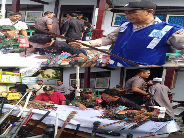“bagi warga yang telah menyerahkan senjata tajam atau senjata rakitan tidak akan dikenakan undang undang darurat yang penjaranya paling kurang 20 tahun bahkan hukuman mati “jelas wadir.