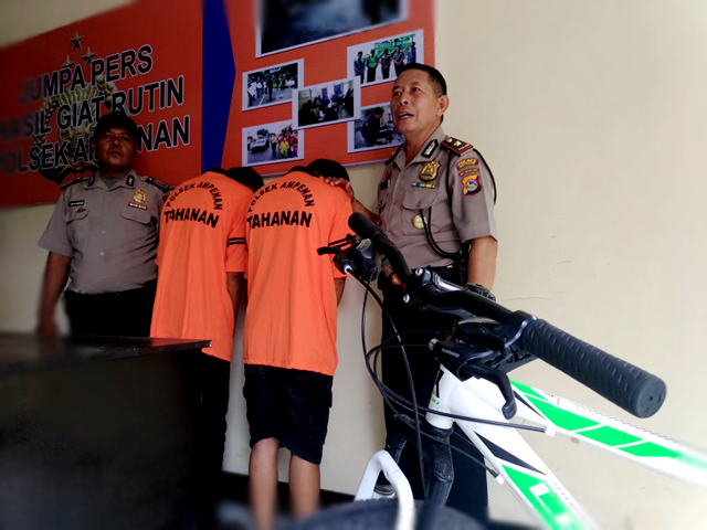 Sumber kepolisian menyebutkan dua remaja AY dan MR ini hendak jalan jalan sore disekitar kekalik,tepat disekitar warung kopi TNT mereka pun melihat sepeda gayung yang di borgol gembok rantai,niat jahat mereka berdua pun menyelinap untuk mengambil barang tersebut,dan benar keduanya pun membawa sepeda itu ke suatu tempat semak semak,meraka pulang mengambil pisau untuk membuka kunci gembok,mereka pun membuka kunci gembok sepeda,mereka tidak membawanya pulang namun kembali menyembunyikan sepeda tersebut di suatu tempat semak semak lahan kosong.