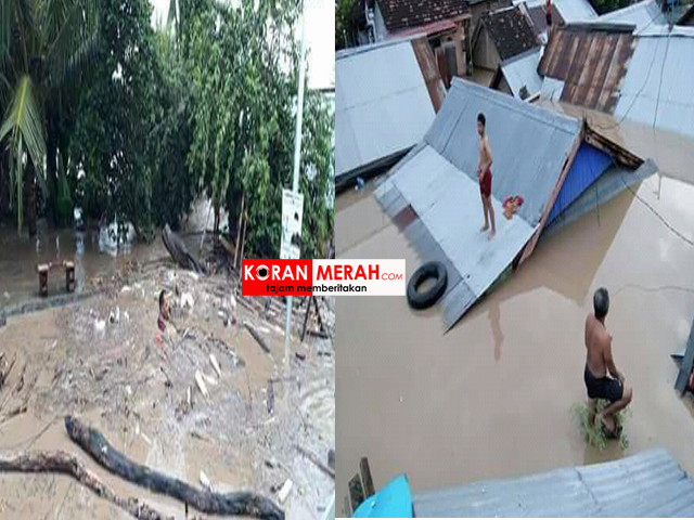 Banjir ganas ini menelungkup rumah warga hingga ketinggian 4 meter sampai ke atap rumah warga.