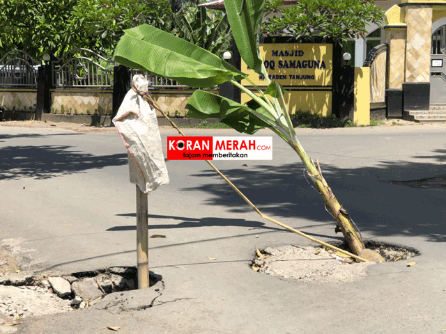 Kesal, warga Lombok Utara tanam pohon di jalan