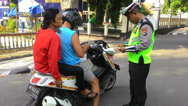 Dalam razia ini sasarannya pengendara sepeda motor dibawah umur serta yang berboncengan lebih dari satu orang, karena itu sangat berbahaya bagi keselamatan pengendara maupun penumpang itu sendiri.