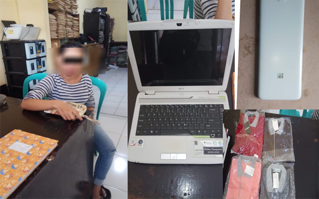 Barang bukti yang berhasil diamankan berupa satu unit Laptop merk ACER, satu unit Ponsel merk XIAOMI, dan empat baju kaos pria. Atas kejadian tersebut korban mengalami kerugian sebesar Rp. 4.000.000,- .