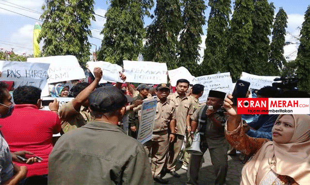 Honorer k2 Lombok Tengah melakukan aksi demo di Kantor Bupati Lombok Tengah mendesak Pemerintah tidak membuka CPNS Jalur Umum