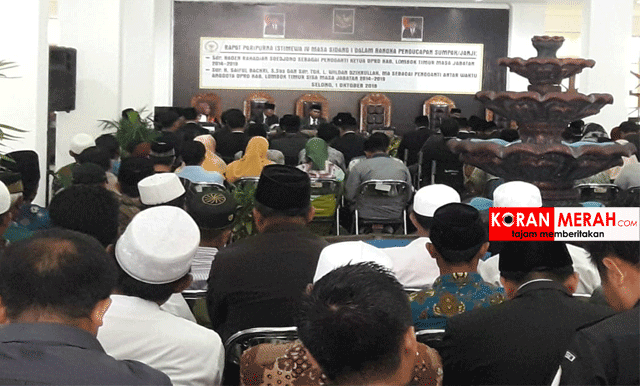 Dimana pengangkatan sumpah jabatan dilakukan di kantor DPRD Lotim, Senin (1|10). Dilakukan Ketua PN Selong, dengan dihadiri Wakil Bupati Lotim, H.Rumaksi bersama unsur Forum Komunikasi Pimpinan Daerah (FKPD) Lotim, wakil pimpinan dewan bersama anggota, pimpinan parpol dan para kepala Organisasi Perangkat Daerah (OPD) se-Lotim.