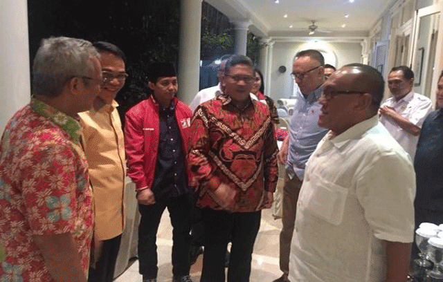 Nah, pada Senin malam, Aburizal menerima Tim Kampanye Nasional Jokowi-KH Ma’ruf Amin yang dipimpin Ketua TKN Erick Thohir. Turut ikut dalam rombongan, para sekretaris jenderal parpol pengusung dan pendukung.