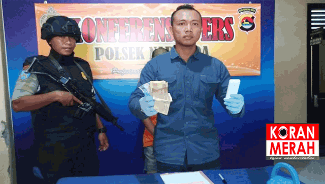 Polsek Narmada saat memamerkan tersangka dan barang bukti pencurian emas