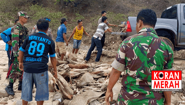 Aparat TNI dan Polri saat mengamankan barang bukti puluhan rusa di Sape Bima