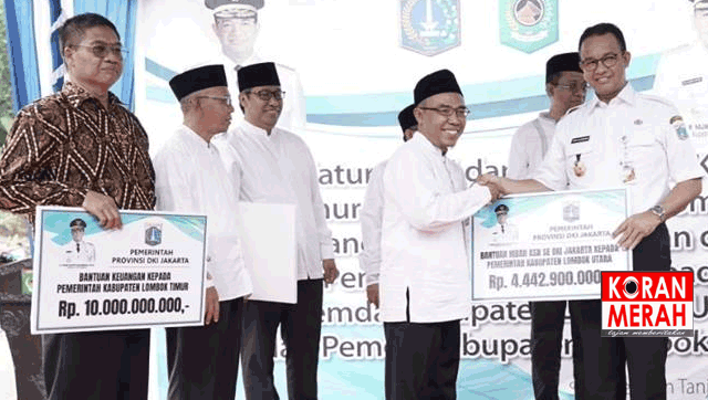 Gubernur DKI Jakarta Anies Baswedan melakukan kunjungan kerja ke Kabupaten Lombok Utara (KLU) dan menyerahkan bantuan bagi Pemda KLU sebesar Rp 33.442.900.000, untuk membangun Hunian Sementara (Huntara) dan sekolah.