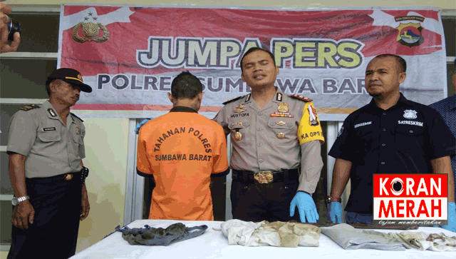 Kapolres Sumbawa Barat AKBP. Mustofa, S. Ik pada Jum,at pagi melakukan press release kasus penganiayaan yang terjadi di Desa Lamunga pada tanggal 4 Januari 2019.
