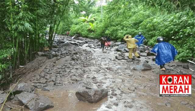 ” Akibat dari adanya material menumpuk di tengah jalan itu arus transportasi tidak bisa melewati jalur untuk sementara waktu,” Ujar Wahab.