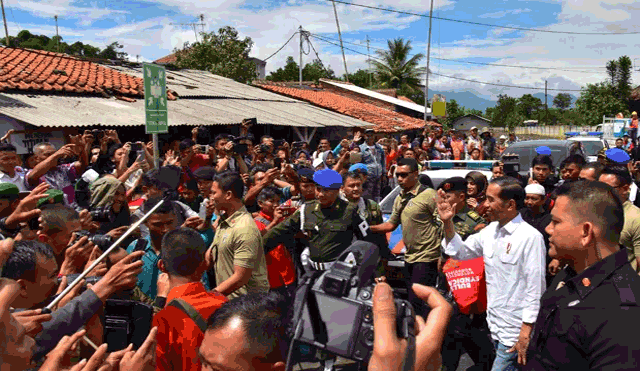 Terkejut dengan kehadiran Jokowi, ibu-ibu ini lantas mendekat lalu menyalami Jokowi. Ketika diizinkan personel Pasukan Pengamanan Presiden (Paspampres) untuk mendekat, salah satu warga bernama Ibu Tin Sartini langsung mengeluarkan smartphone untuk foto dirinya dengan Jokowi.