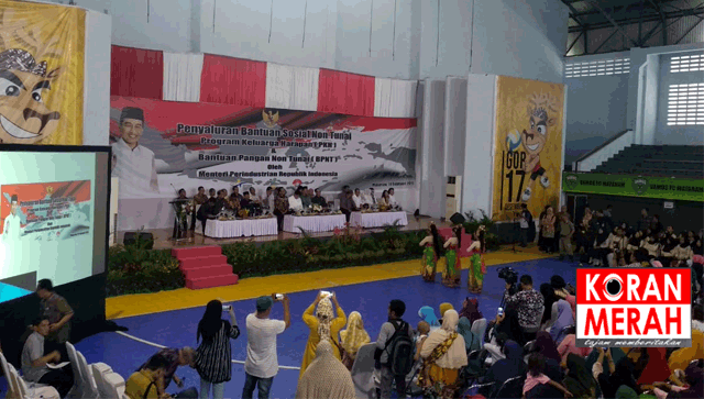 Dihadapan ratusan kelompok penerima manfaat PKH BLT dan pejabat daerah setempat di Gedung Olahraga (GOR) Teruide Kecamatan Sandubaya Mataram. Airlangga Hartarto menyampaikan salam dari pak presiden dan dirinya sangat berbahagia para penerima manfaat bisa berkumpul.