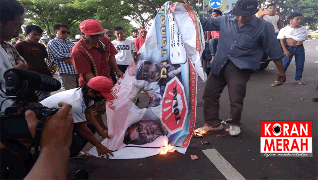 Massa dari Alinsi Lintas Generasi Muda NTB saat gelar aksi menolak Neno Warisman
