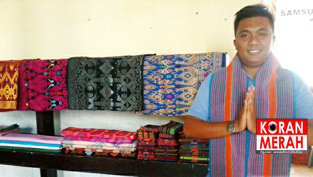 Ketua Koperasi Stagen Batujai, Lalu Piringadi saat mempromosikan tenun Batujai