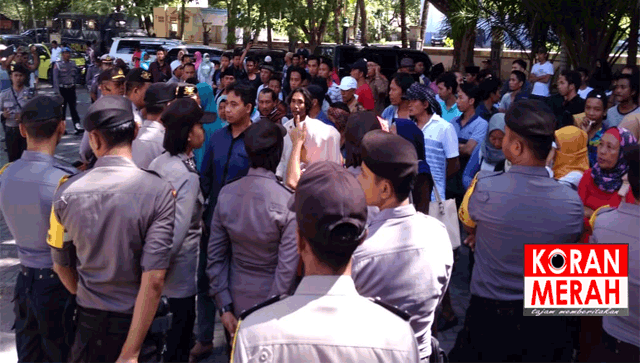 Puluhan massa pendukung Baiq Sumarni mendatangi kantor KPU Lombok Tengah, Senin [01/4]. Kedatangan mereka guna mengawal keputusan KPU Lombok Tengah terhadap Baiq Sumarni, Caleg Golkar yang sebelumnya dicoret oleh KPU karena tersangkut pidana pemilu melibatkan ASN.