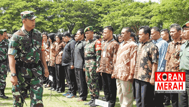 Kolonel Czi Ahmad Rizal Ramdhani, S.Sos. SH. M.Han., memimpin apel gelar pasukan pengamanan VVIP di lapangan Yonif 742/SWY Gebang Mataram, Kamis (16/5)