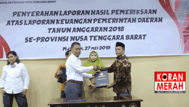 Penyerahan Laporan Hasil Pemeriksaan (LHP) atas Laporan Keuangan Pemerintah Daerah Tahun Anggaran 2018 se-Provinsi NTB dilangsungkan di Kantor BPK Perwakilan NTB di Mataram, Senin, (27/5/2019).
