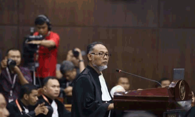 Kuasa Hukum Prabowo-Sandi, Bambang Widjoyanto saat sidang di MK