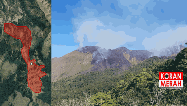 ” Lokasi kebakaran di bukit Kondo. Saat siaran pers ini diterbitkan, Tim masih melakukan pemadaman. Titik api masih terpantau 2 hospot mengarah ke bukit Kondo dan gunung Pusuk,” kata Kepala Balai TNGR, Sudiyono.
