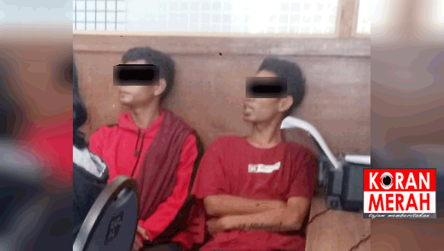 Dua tersangka pelaku pembunuhan di Utan Sumbawa saat pegelaran Kecimol