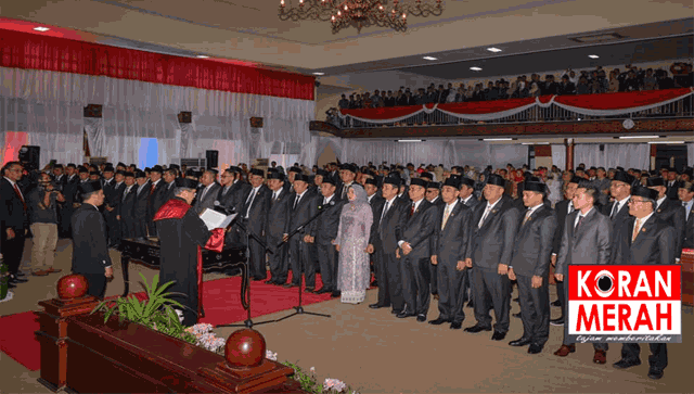 Proses pelantikan ditandai dengan pengambilan sumpah/janji seluruh anggota dewan, oleh Ketua Pengadilan Tinggi Provinsi NTB, H. Kresna Menon, SH, MH, di Ruang Sidang Utama, Kantor DPRD Provinsi NTB, Senin (2/9/2019).