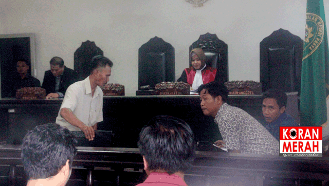 ” Mengadili satu menyatakan terdakwa Abdul Muthollib dan terdakwa dua Usman telah terbukti secara sah dan meyakinkan bersalah melakukan tindak pidana memasuki lahan tanpa izin yang berhak. Kedua menjatuhkan pidana para terdakwa satu Abdul Muthollib dan terdakwa dua Usman oleh karena itu dengan pidana penjara masing masing selama satu bulan dengan ketentuan bahwa pidana tersebut tidak perlu dijalani oleh para terdakwa kecuali dikemudian hari dengan ketentuan lain dengan keputusan hakim para terpidana dalam masa percobaan selama 3 bulan telah melakukan pidana,” Kata Hakim Fita Jumiati membacakan putusannya.