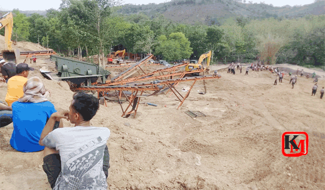 Mereka menghentikan paksa operasi alat berat yang berada di lokasi tambang. Empat alat berat, Eskavator dan Stum penggilas dirusak massa yang kalap tak diindahkan oleh perusahaan penambang. polisi yang berada di lokasi tak bisa berbuat banyak karena kalah jumlah.