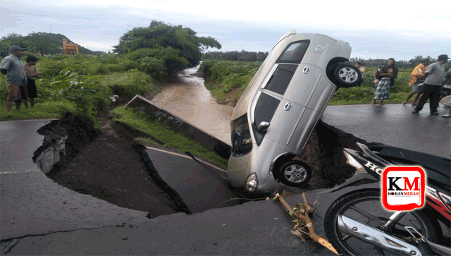 Akibat kejadian ini, satu unit mobil Inova dan dua unit sepeda motor ikut terjatuh di jembatan yang rubuh itu.