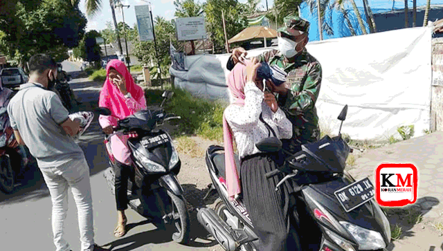 Koramil 1620-05/Janapria bekerjasama dengan Pemerintah Desa Janapria menggelar sosialisasi dan membagikan masker kepada para pengguna jalan di Kecamatan Janapria, Senin (27/4).