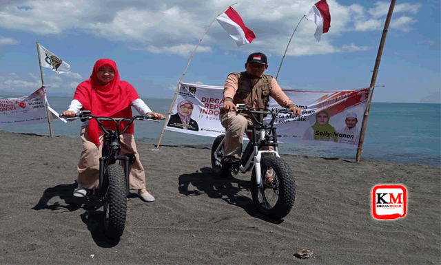 Bersepeda menggunakan sepeda listrik buatan NTB, TGH Manan didampingi Ketua F-PKS Kota Mataram, Hj Istiningsih, melaunching empat unit lapak UMKM di Pantai Senja. Kegiatan juga dihadiri Wakil Ketua F-PKS Kota Mataram, Ismul Hidayat, serta jajaran anggota, Irawan Aprianto, H Syamsul Bahri, dan Drs Salim Bamasaq.