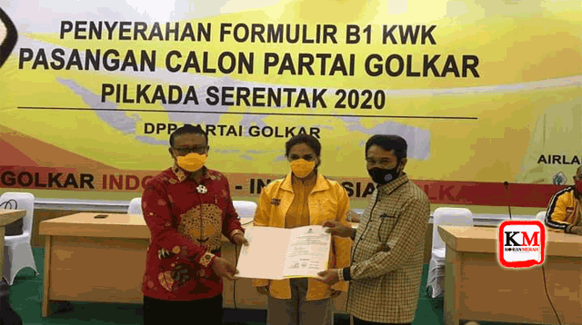 Akhirnya Golkar resmi memberikan formulir B1 KWK kepada pasangan bakal calon bupati dan wakil bupati Lombok Tengah, Lalu Pathul Bahri- Dr.Nursiah.