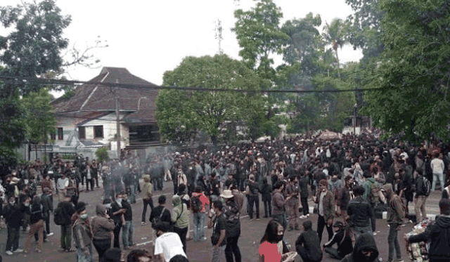 Sebelumnya, ratusan masa aksi demonstrasi mulai berkumpul di Jalan Dipenogoro atau tepatnya di depan Kantor DPRD Jabar, Kota Bandung, pada Selasa (6/10/2020) siang.