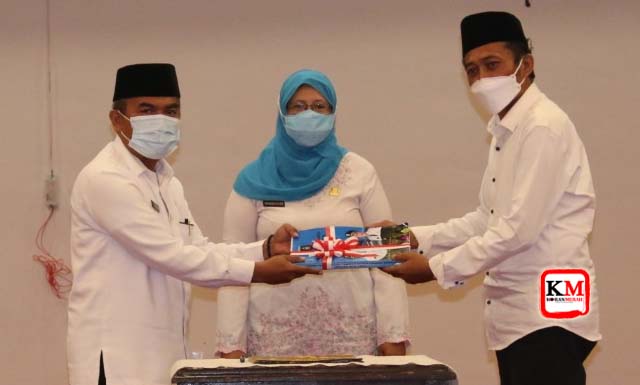 Lalu Idham Khalid saat menerima memori tugas Bupati Lombok Tengah dari Wakil Bupati Loteng purna tugas, Lalu Pathul Bahri disaksikan oleh Asisten 3 Sekda NTB, dr.Nurhandini Ekadewi.
