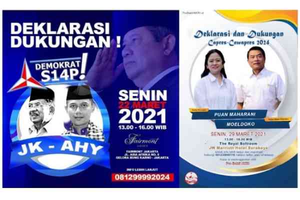 Masih di dalam undangan deklarasi dukungan Puan dan Moeldoko, tertera tanggal deklarasi dan dukungan Senin, 29 Maret 2021. Dukungan deklarasi itu disebut-sebut akan berlangsung di salah hotel berbintang di Surabaya.