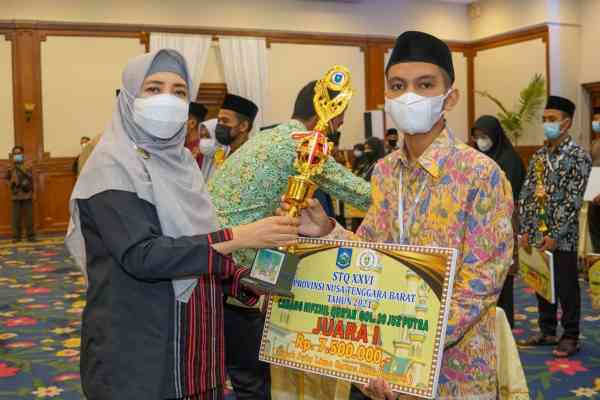 Menutup Pelaksanaan Seleksi Tilawatil Qur’an (STQ) XXVI tingkat Provinsi NTB, Wakil Gubernur NTB, Dr. H. Sitti Rohmi Djalilah, M.Pd., berpesan agar kegiatan seperti STQ ini tidak hanya sekedar sebagai peneguh syiar Islam saja, tetapi bagaimana dapat mendorong anak-anak dan generasi muda NTB semakin banyak yang mencintai Al-Qur’an.