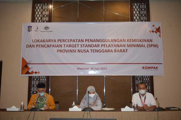 Bappeda Provinsi NTB berkolaborasi dengan Bappenas dan KOMPAK menggelar Lokakarya Percepatan Penanggulangan Kemiskinan dan Pencapaian Target Standar Pelayanan Minimal (SPM) Provinsi Nusa Tenggara Barat di Hotel Santika Mataram.