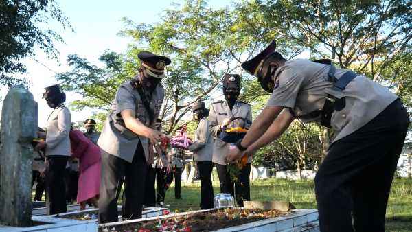 Dalam rangka perayaan Hari Ulang Tahun Bhayangkara ke-75, Polres Lombok Tengah mengadakan acara ziarah dan tabur bunga di Makam Pahlawan Mandalika Praya, Selasa (29/6/2021).