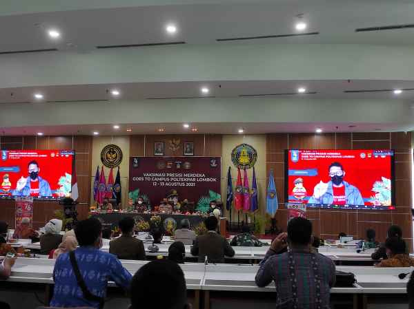 Menteri Pariwisata dan Ekonomi Kreatif, Dr. H. Sandiaga Salahudin Uno, BBA, MBA, secara daring mengatakan penyelenggaraan vaksinasi bersama mahasiswa Poltekpar, Praja IPDN dan masyarakat lainnya berkat adanya kerjasama yang baik antara Poltekpar Lombok dengan Polda NTB serta Pemkab Loteng dengan target 800 vaksin.