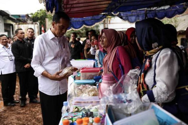 Jokowi melakukan kunjungan kerja (Kerja) di Kota Bandung, Senin (17/1). Jokowi mengunjungi Pasar Sederhana Kota Bandung untuk memberikan bantuaan sembako dan bantuan tunai kepada 100 pedagang yang tidak memiliki kios. (RMOL)