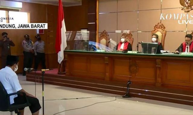 Majelis hakim yang dipimpin oleh Yohanes Purnomo Suryo membacakan vonis di Pengadilan Negeri Bandung, Jawa Barat, pada Selasa (15/2/2022).