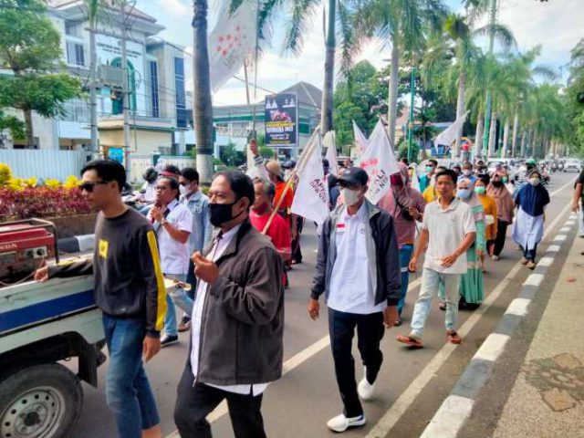 Ratusan Pedagang Kali Lima (PKL) dari sejumlah wilayah di Mataram, Lombok Tengah dan Lombok Barat, Jumat 11 Maret 2022, berunjukrasa ke gedung DPRD NTB.