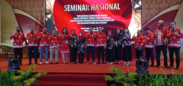 Seminar nasional tersebut bertemakan Implementasi Kewenangan Notaris Dalam Prespektif Hukum Positif Indonesia Serta Kaitannya Dengan Pertanggung Jawaban dan Perlindungan Hukum Bagi Notaris. Sedangkan empat tujuan yang dimaksud. Pertama, menelaah kebijakan hukum yang berkaitan dan diterapkan pada notaris dalam menjalankan jabatannya.