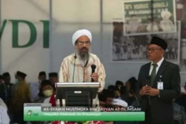 Guru Besar Madrasah As-Shaulatiyyah Makkah Al-Mukarramah Syakh Abdullah Musthofa Bin Zayyan At-Tilimisani memberikam Da’wah Islamiyah beliau pada puncak peringatan HULTAH Ke-87 Madrasah NWDI di Anjani, Ahad (21/08/22).