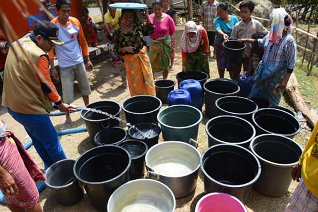 warga sedang menanti pasokan air dari BPBD. Sumber pihak ketiga