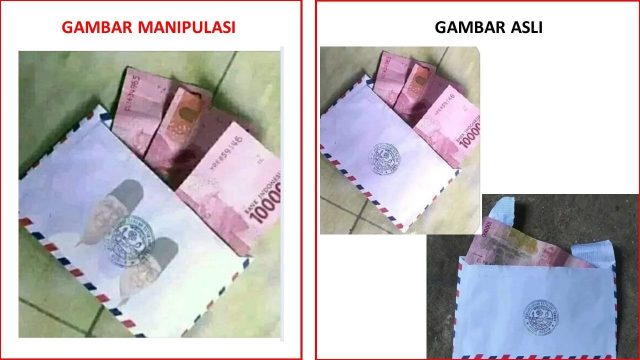Gambar asli amplop itu terdapat dalam unggahan akun instagram @weru.shter yang sekaligus mengklarifikasi gambar hoaks atau manipulatif tersebut. Disebutkan bahwa amplop tersebut merupakan pengganti uang bensin atau lelah para peserta acara SH Terate.