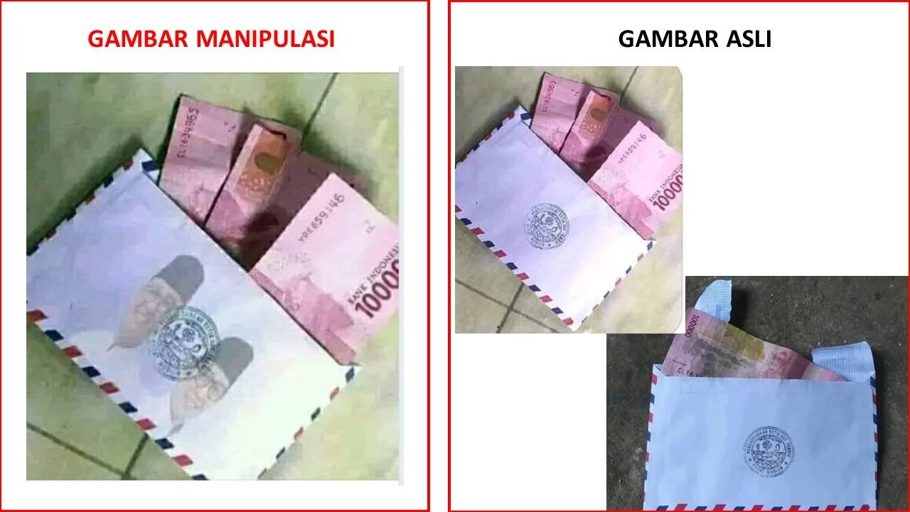 Di dalam amplop terlihat pula uang pecahan Rp 100.000 sebanyak tiga lembar.