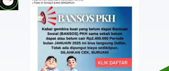 “Akhir-akhir ini banyak beredar pesan berantau berisi link/tautan yang di dalanya terdapat berita bohong (hoaks) terkait pencairan dan/atau pendaftaran bantuan sosial.