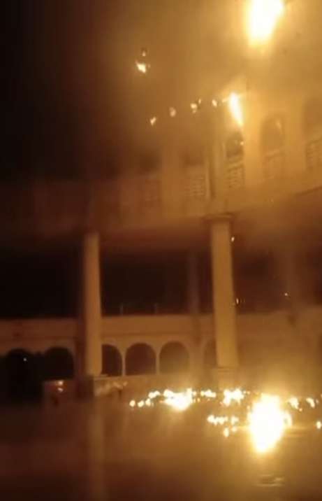 Kebakaran terjadi di kubah Masjid Agung Praya, Kelurahan Leneng, Kecamatan Praya, Kabupaten Lombok Tengah, pada Kamis dini hari, 12 Februari 2025.