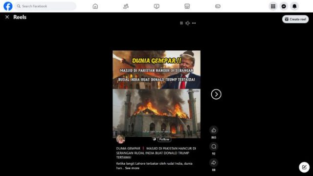 CEK FAKTA: Benarkah Video Masjid Nurul Huda di Lahore Pakistan Diserang Rudal India?
