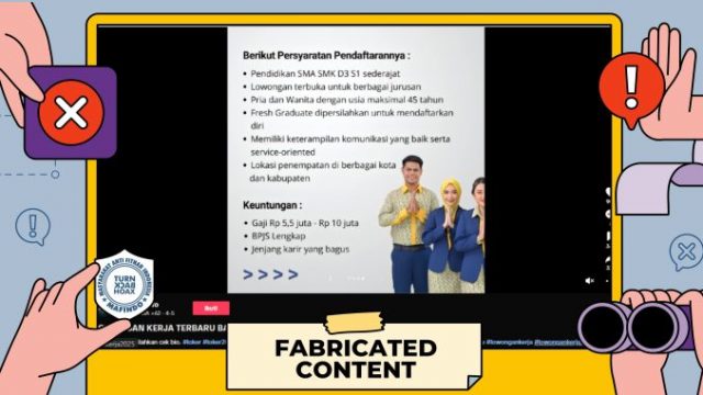 Hasil Cek Fakta Tim Pemeriksa Fakta Mafindo (TurnBackHoax) menelusuri klaim tersebut dengan memasukkan kata kunci “loker PT Mandiri Taspen” ke mesin pencari Google. Hasil pencarian teratas mengarah ke situs resmi Bank Mandiri Taspen (bankmandiritaspen.co.id).